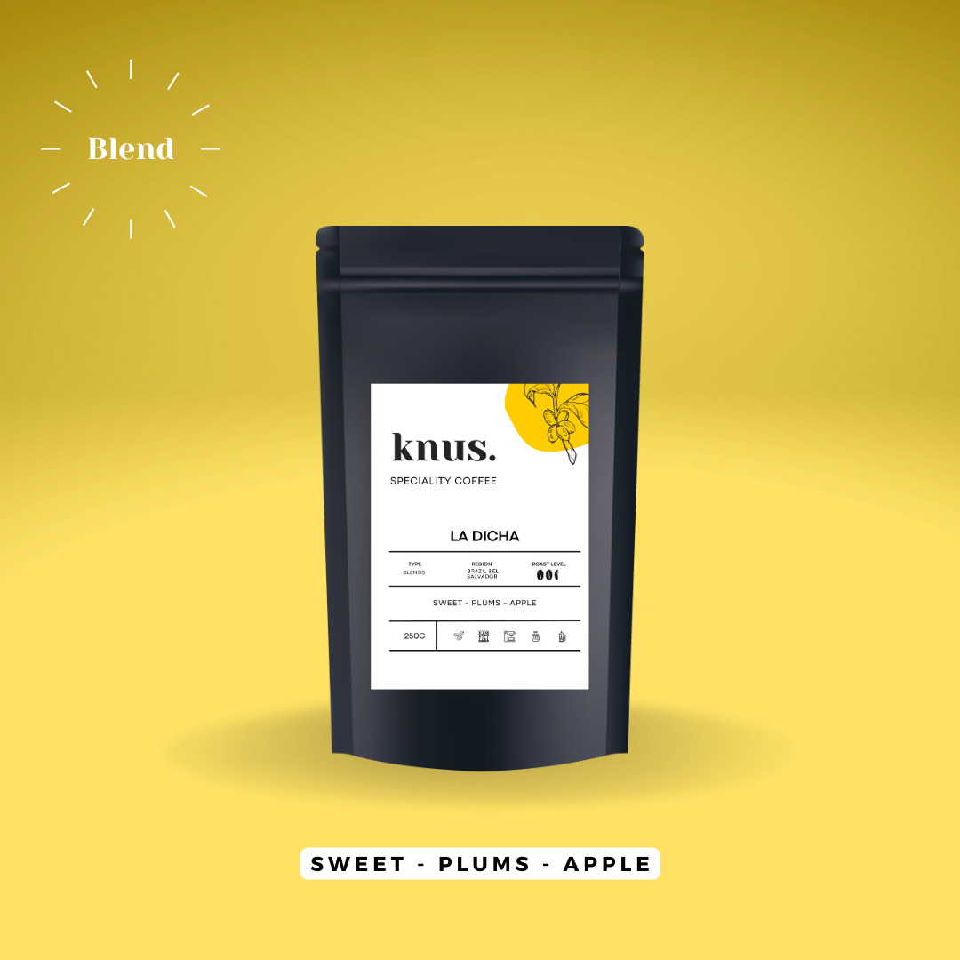 Our La Dicha blend is our take on the famous Jamaica Blue Mountain coffee beans. We have blended speciality coffee beans from Brazil and El Salvador and roasted them to bring out the natural sweetness. This is an easy smooth-drinking coffee that we are very proud of.